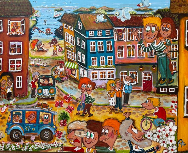 Mens jeg venter, benytter jeg lejligheden til at fylde lageret op med nye billeder. Herunder kan I se dagens friske nyhed, “Hej på dig”, akryl på lærred, 100 × 90 cm.